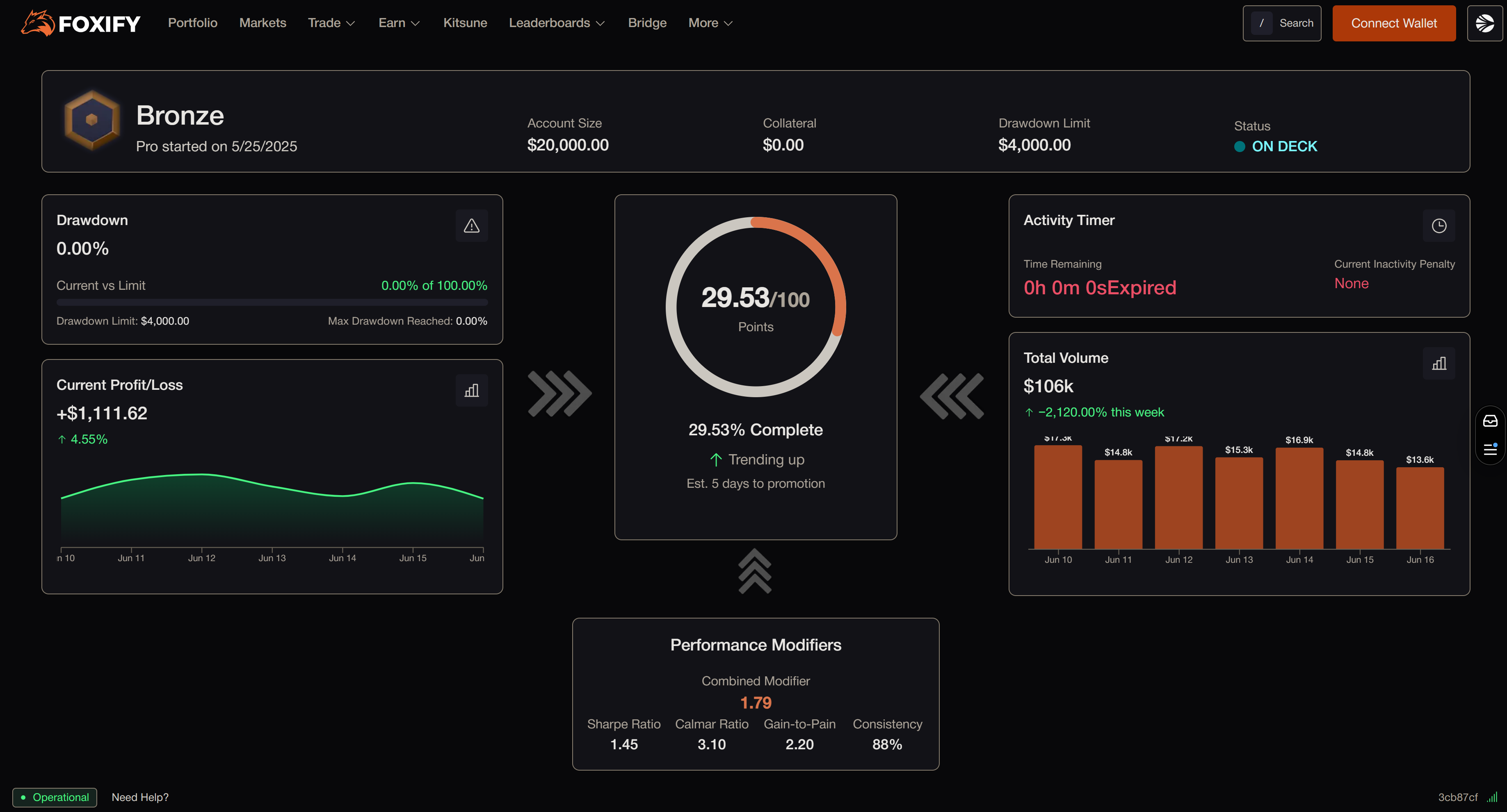 The Trader can monitor their progress and performance through the FUNDED dashboard. The dashboard provides critical information on your current challenge, while offering insightful data on your trading history.\